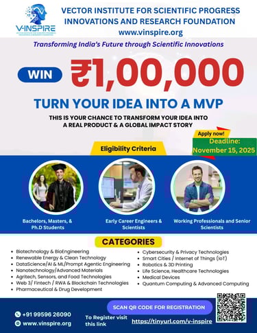 At Vinspire, we empower the next generation of innovators to transform communities and drive scientific progress for societal betterment through research, discovery, and innovation.